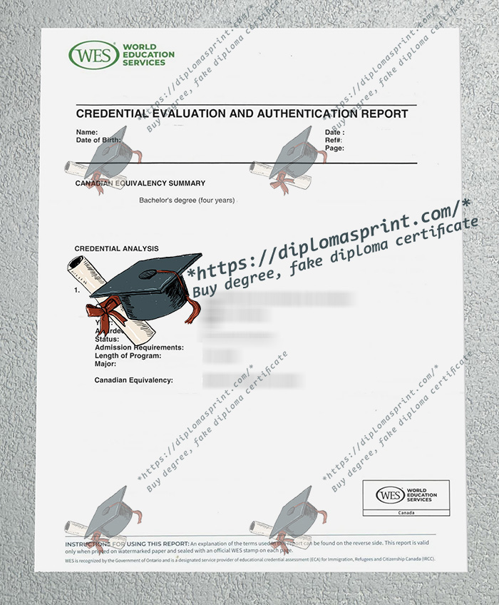 Purpose: The WES (World Education Services) Evaluation Report replacement services provided are strictly intended for personal reference, novelty purposes, theatrical props, or educational display only.